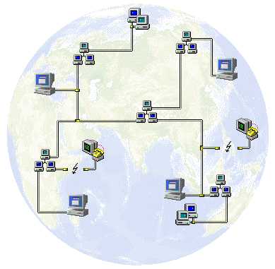 Wenn also im Internet ein Datentransfer stattfindet, ist keinesfalls von vorneherein klar, welchen Weg die Daten nehmen. Sogar einzelne Pakete einer einzigen Sendung können völlig unterschiedliche Wege nehmen. Wenn Sie beispielsweise von Deutschland aus eine WWW-Seite aufrufen, die auf einem Rechner in den USA liegt, kann es sein, daß die Hälfte der Seite über den Atlantik kommt und die andere über den Pazifik, bevor Ihr WWW-Browser sie anzeigen kann. Weder Sie noch Ihr Browser bekommen davon etwas mit.